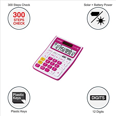 SettingsCasio MJ-12VCb-RD 300 Steps Check & Correct Colourful Desktop Calculator (White and Pink) removeCasio JW-200SC-BU Premium & Stylish Calculator (Light Blue) removeCasio MJ-12D 150 Steps Check and Correct Desktop Calculator removeCasio MJ-120D 150 Steps Check and Correct Desktop Calculator with Tax Keys, Black removeCasio JW-200SC-GD Premium & Stylish Calculator (Gold) removeCasio MJ-12Sb Desktop Calculator remove